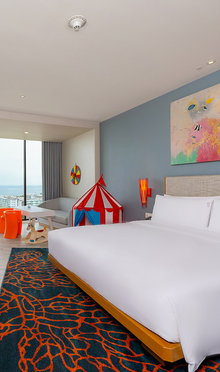 Holiday Inn Vana Nava Hua Hin is a popular hotel offering spacious family rooms. Our KidSuites® provides a separate kids' room with a bunk bed and play space they’ll love. If you’re staying with your wider family, consider our 2- or 3-bedroom suites with front-connecting rooms. We expand our rooms to expand your happiness.