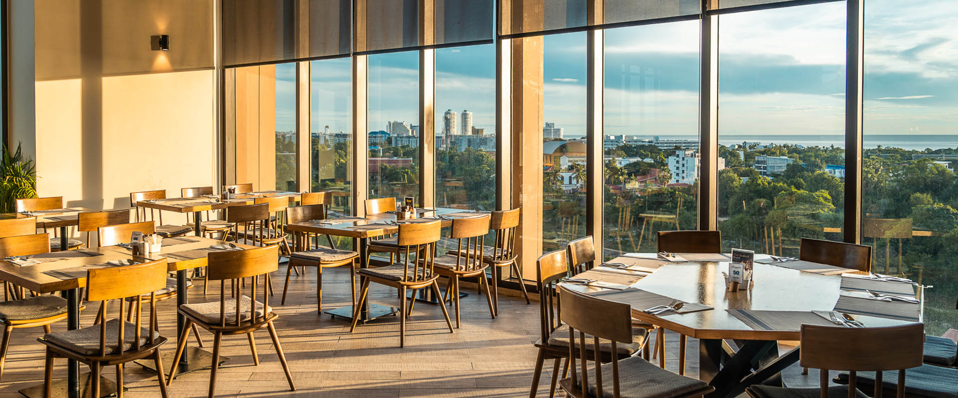 Whether you're dining with family and friends, having a casual lunch for two, or hosting a MICE luncheon, our spacious and bright restaurant with design elements inspired by Hua Hin's fishing history is the perfect place for you. Relax under a colorful woven ceiling, enjoy the view through wall-to-ceiling windows, and admire a local artist's mural while you dine, chat, and drink at Plamong, one of the best restaurants in Hua Hin.