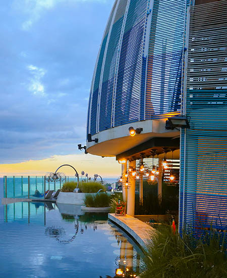 Swim up to our pool bar, perfectly positioned between our two infinity pools, for a refreshing smoothie, cocktail, or beer. Enjoy panoramic views of the Gulf of Thailand as you relax and recline on lounge chairs on the pool's edge or under the cover of the spacious deck.