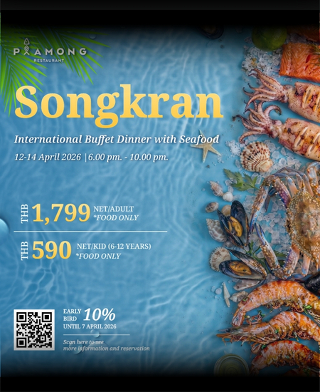บุฟเฟ่ต์สงกรานต์ที่ห้องอาหารประมง | 12 - 14 เมษายน 2568 ตั้งแต่เวลา 18.00 น. - 22.00 น.