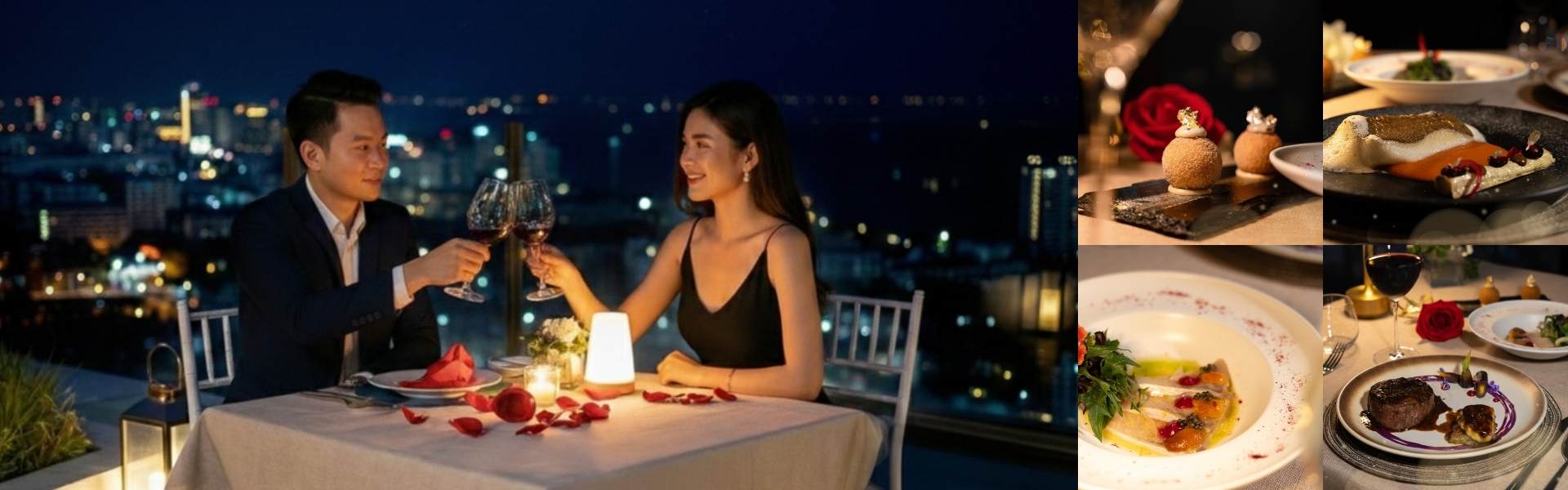 เติมความหวานในวันวาเลนไทน์ปีนี้กับดินเนอร์มื้อค่ำสุดโรแมนติก ใต้แสงดาว บนดาดฟ้าชั้น 27 และริมสระว่ายน้ำวิวอินฟินิตี้ชั้น 26 พร้อมชมวิวเมืองหัวหิน และทะเลอ่าวไทยแบบพาโนราม่าจากมุมสูง พร้อมดื่มด่ำกับเซ็ตเมนูสุดพิเศษที่ถูกรังสรรค์ขึ้นมาพิเศษเฉพาะวันวาเลนไทน์นี้เท่านั้น
