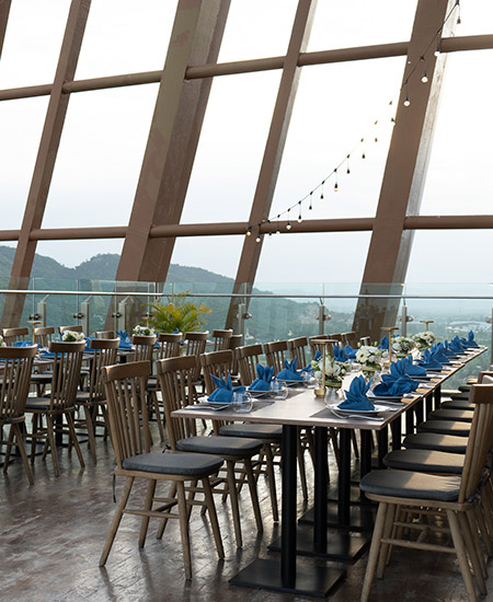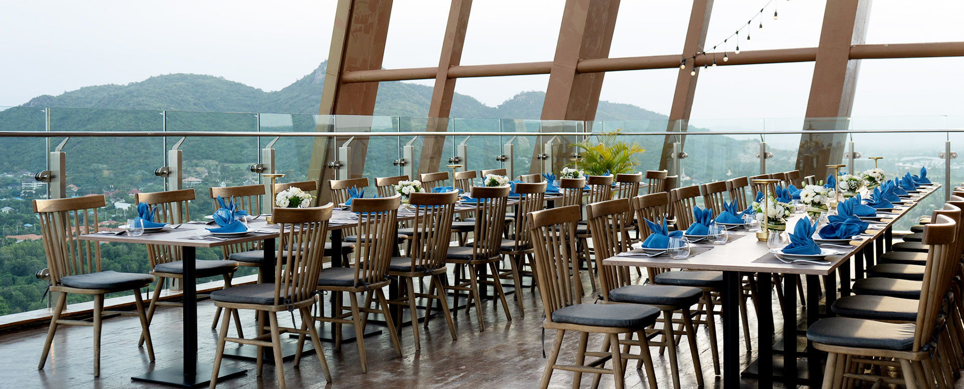 Elevate your event to new heights with our rooftop venue, located on the 27th floor, the highest in Hua Hin. Experience a unique atmosphere of an event in the sky, surrounded by breathtaking views. Our flexible space accommodates up to 100 guests, offering both indoor and outdoor options to suit your needs.